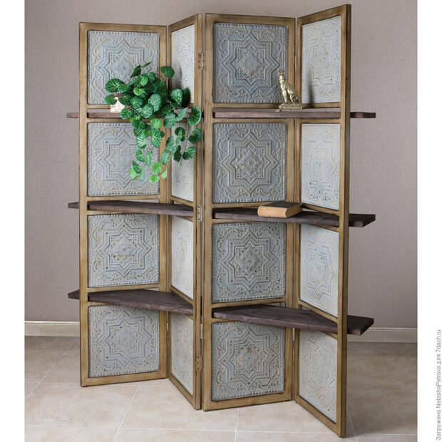 А если при сборке каркаса предусмотреть специальную конструкцию, в мобильной перегородке можно разместить и полки.