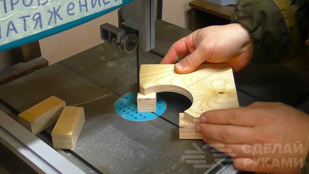 На следующем этапе приклеиваем к перпендикулярным сторонам второй слой фанеры для утолщения зажимной части. Отрезаем всё лишнее, строго по заготовке. Зачищаем и шлифуем края.
