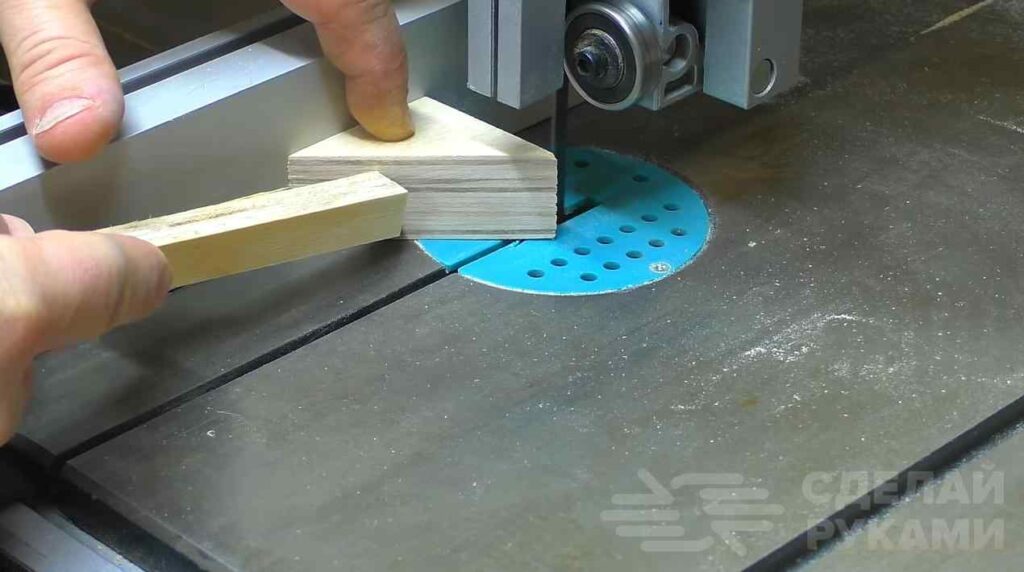 Для зажимания самой заготовки между двумя губками необходимо изготовить внутренний упор. Также вырезаем треугольник меньшего диаметра и подготавливаем прижимные части, соблюдая угол в 90 градусов.