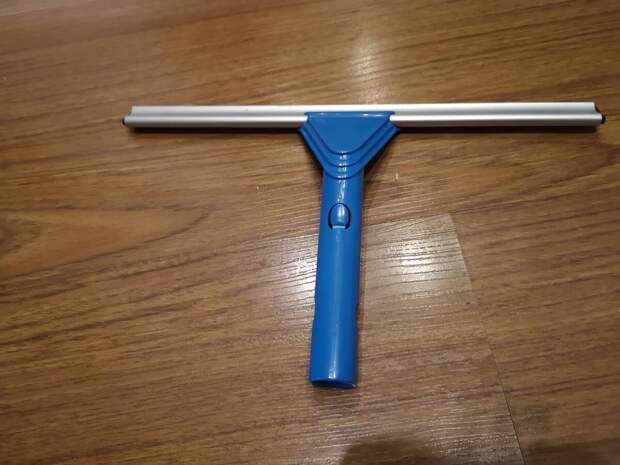 Приходится выбирать, или мыть только изнутри, или рисковать упасть.На помощь мне приходит вот такой девайс с ручкой, вроде называется, каучуковый скребок.