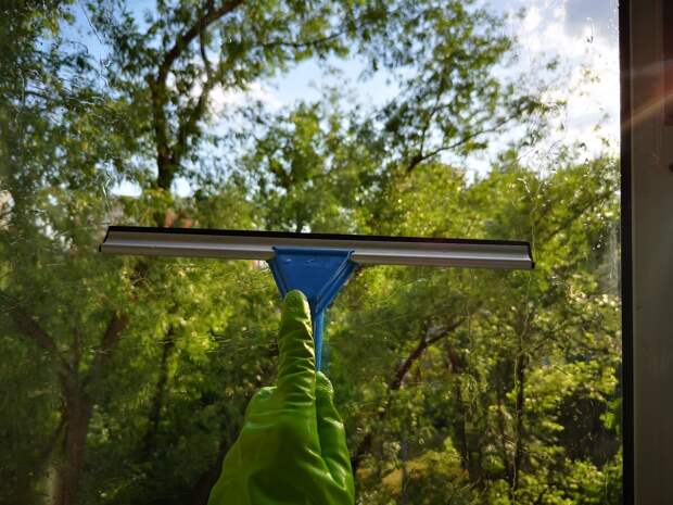 Как мыть скребком окно?