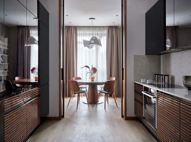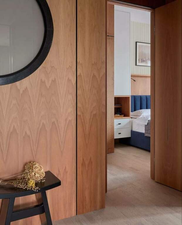 Дизайнер Татьяна Виталина использовала здесь натуральный шпон европейского ореха.