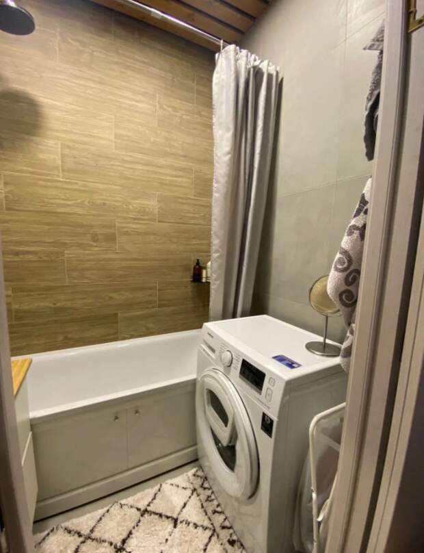 Как видите, дизайнер данного проекта использовал недорогую плитку имитирующую дерево - получилось довольно стильно