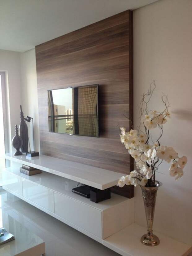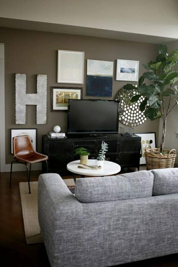 Расстояние от дивана до телевизора зависит от размера экрана. Учитывайте диагональ экрана и ориентируйтесь на эти приблизительные данные: 17” требует расстояния в 2 м; 25” – 3 м, 32” – 4 м; 37” – 5 м. О чем это говорит? Не стоит покупать огромный телевизор в маленькую комнату, ведь небольшое расстояние от дивана до него сделает его просмотр очень некомфортным. Телевизор может монтироваться на стену или устанавливаться на тумбе – ее ширина может составлять от 40 до 60 см. Высота монтажа телевизора подразумевает нахождение экрана на уровне глаз сидящего. Лучше, чтобы вы могли смотреть телевизор, не поворачивая голову, то есть находясь напротив телевизора, а не сбоку от него.